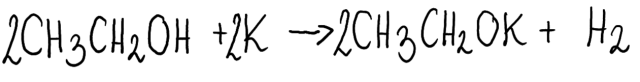 Alkohole reagują z metalami aktywnymi I i II grupy układu okresowego, tworząc związki zwane alkoholanami- w opisanym przypadku powstaje etanolan potasu.