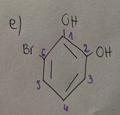 3. Do wymienionych podstawników dodajemy nazwę „fenol” bądź ,,benzenol”. W przypadku kilku grup -OH zaznaczamy ich położenie oraz krotność, stosując końcówki -diol, -triol (w zależności od ich ilości).