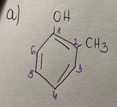 1. W pierwszej kolejności numerujemy atomy węgla w pierścieniu aromatycznym, rozpoczynając od atomu, do którego przyłączona jest grupa -OH. Potem numerujemy atomy węgla tak, aby podstawniki miały jak najniższe lokanty.
