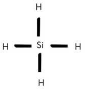 Atom krzemu posiada 4 elektrony walencyjne, łączy się on z czterema atomami wodoru.