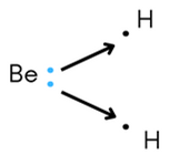 Atom berylu posiada 2 elektrony walencyjne, łączy się z dwoma atomami wodoru.