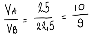 4. Obliczamy stosunek objętościowy roztworu A do roztworu B- wynosi on 10:9.
