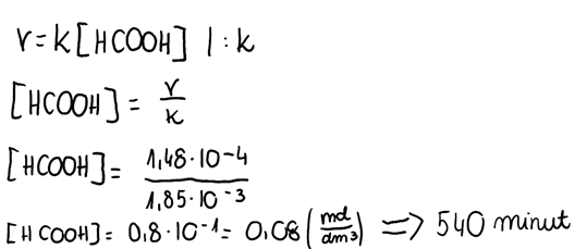 Określ, po jakim czasie szybkość badanej reakcji będzie równa 1,48 ∙ 10-4 mol ∙ dm-3∙ min-1.