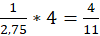 Proporcję 1 : 2,75 należy potraktować jako stosunek indeksów stechiometrycznych we wzorze sumarycznym. Jak wiadomo, indeksy stechiometryczne muszą być liczbami całkowitymi, a więc sprowadzamy proporcję do najmniejszych możliwych liczb całkowitych.