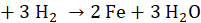 Jest to reakcja redukcji tlenku żelaza (III). Aby zredukować 1 mol tlenku żelaza (III) potrzebne są trzy mole cząsteczek wodoru. Powstają dwa mole atomów żelaza i trzy mole cząsteczek wody.