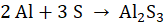 Potrzebne są dwa mole atomów glinu i trzy mole atomów siarki, aby otrzymać jeden mol siarczku glinu.