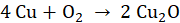 Potrzebne są cztery mole miedzi i jeden mol tlenu cząsteczkowego, aby otrzymać dwa mole tlenku miedzi (I).