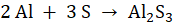 Podczas reakcji syntezy atomy reagują ze sobą i powstaje siarczek glinu (III). Nie powstają produkty uboczne. Po zbilansowaniu reakcji wiadomo, że potrzeba dwóch moli glinu i trzech moli siarki, aby otrzymać jeden mol siarczku glinu (III).