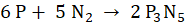 Potrzebne jest sześć moli atomów fosforu i pięć moli azotu, aby otrzymać dwa mole azotku fosforu (V).