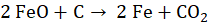 Potrzebne są dwa mole tlenku żelaza (II) i jeden mol węgla, aby otrzymać dwa mole żelaza i jeden mol dwutlenku węgla.