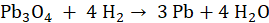 Potrzebny jest jeden mol tetratlenku triołowiu i cztery mole wodoru, aby otrzymać trzy mole ołowiu i cztery mole wody.