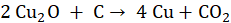 Potrzebne są dwa mole tlenku miedzi (I) i jeden mol węgla, aby otrzymać cztery mole miedzi i jeden mol dwutlenku węgla.