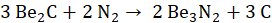 Potrzebne są trzy mole węgliku berylu (II) i dwa mole azotu, aby otrzymać dwa mole azotku berylu (II) i trzy mole węgla.