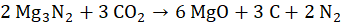 Potrzebne są dwa mole azotku magnezu i trzy mole dwutlenku węgla, aby otrzymać sześć moli tlenku magnezu, trzy mole węgla i dwa mole azotu.