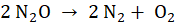 Wynikiem rozkładu dwóch moli tlenku azotu (I) są dwa mole azotu i jeden mol tlenu cząsteczkowego.