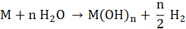 W reakcji metalu z wodą powstaje wodorotlenek. Grupa wodorotlenkowa jest jednowartościowa, więc ilość grup równa się n. Aby zbilansować reakcję, potrzebne jest n cząsteczek wody i