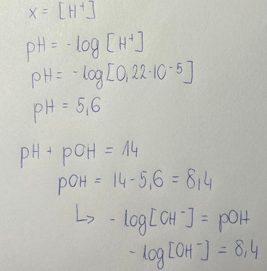 6. Wiedząc, że pOH to ujemny logarytm ze stężenia jonów OH-, obliczamy owe stężenie.