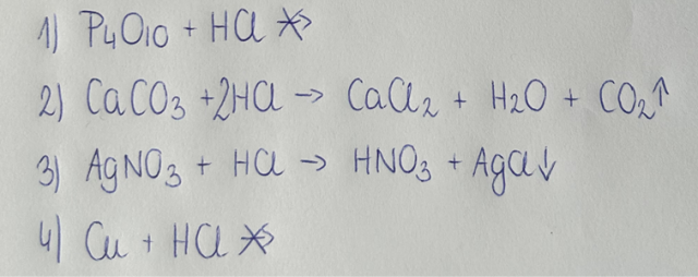W reakcji 4. Nie zaobserwowano żadnych zmian, ponieważ miedź nie reaguje z kwasem solnym, gdyż jej potencjał elektrochemiczny, wyższy od potencjału wodoru decyduje o tym, że nie jest ona w stanie wyprzeć wodoru z roztworów kwasów beztlenowych.