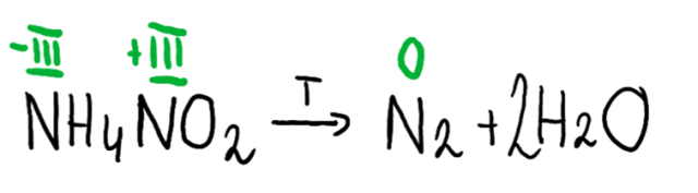 Napisz równanie reakcji termicznego rozkładu azotanu (III) amonu, a następnie ustal stopnie utlenienia wszystkich azotów pojawiających się w tym równaniu.