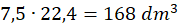 1 mol gazu w warunkach normalnych zajmuje 22,4 dm3
