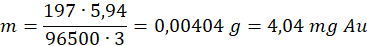 Taki sam ładunek przepłynął przez katodę, na której wydzieliło się złoto.