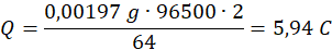 Najpierw należy obliczyć wielkość ładunku użytego do redukcji miedzi ze wzoru: