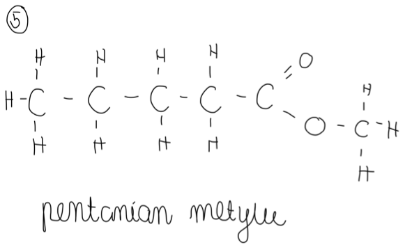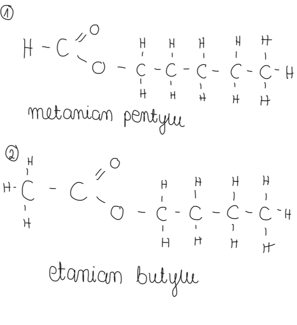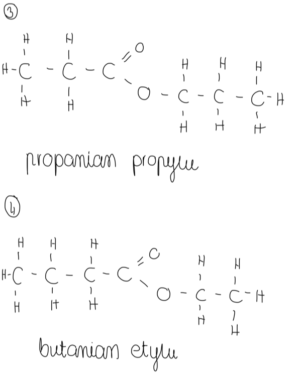 1. Należy policzyć ilość atomów węgla w części, która pochodzi od kwasu karboksylowego i ustalić nazwę tegoż kwasu.