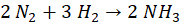 Według równania stosunek stechiometryczny wodoru do azotu to 3 : 2, więc stosunek z nadmiarem 0,5 mola to 3 : 2,5. Po zamianie na liczby całkowite 6 : 5.