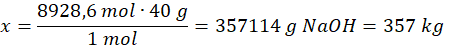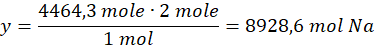 Z równania wiadomo, że z 2 moli Na powstają 2 mole wodorotlenku, więc z 8928,6 mola Na powstanie tyle samo wodorotlenku.
