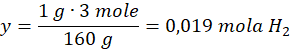 160 g Fe2O3 – 3 mole H2