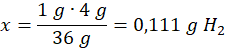 36 g wody – 4 g H2