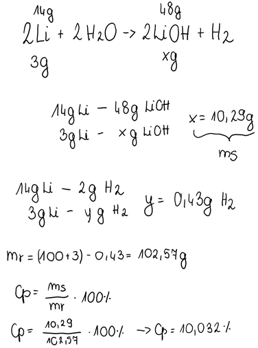 4. Obliczamy masę roztworu, odejmując od sumy mas substancji rozpuszczonej w wodzie, masę gazu, który opuścił naczynie.