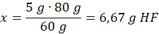 Z równania wiadomo, że na 60 g SiO2 potrzeba 80 g HF: