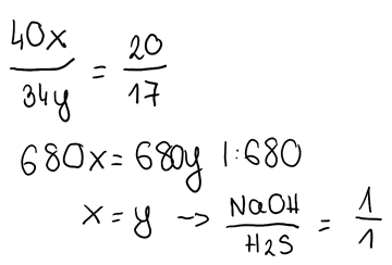 1. Obliczamy stosunek molowy NaOH i H2S, znając ich stosunek masowy: