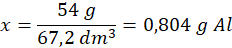 54 g Al – 67,2 dm3