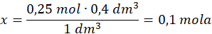 x moli – 0,4 dm3