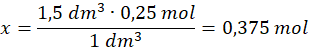 x mol – 1,5 dm3