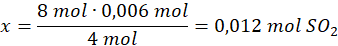 Z równania wynika, że z 4 moli pirytu powstaje 8 moli SO2.