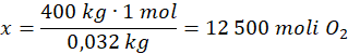 Z równania wynika, że na 32 g (0,032 kg) siarki zużywa się 1 mol tlenu: