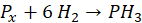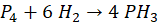 Jeśli mierzymy gazy w tych samych warunkach to stosunek objętościowy jest równy molowemu, a więc możemy uzupełnić współczynniki w reakcji – 1 mol fosforu i 6 moli wodoru.