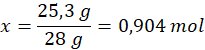 Przyjmij, że otrzymano 100 g mieszaniny, czyli: 25,3 g N2, 13,6 g NO oraz 100 – 25,3 – 13,6 = 61,1 g wody.