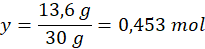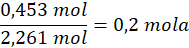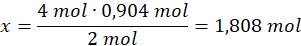 Z równania wynika, że z 4 moli amoniaku powstają 4 mole NO, a więc potrzeba 0,453 mola amoniaku, by powstało 0,453 mola NO.