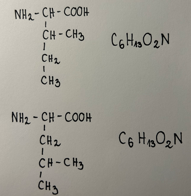 Ustal, czy podane aminokwasy są względem siebie izomerami. Odpowiedź uzasadnij, zapisując ich wzory sumaryczne.