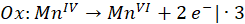 Reduktorem jest atom, który zwiększa swój stopień utlenienia (Mn: +4 → +6), a utleniaczem ten, który zmniejsza swój stopień utlenienia (Cl: +5 → -1).