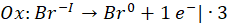Reduktorem jest atom, który zwiększa swój stopień utlenienia (Br: -1 → 0), a utleniaczem atom, który zmniejsza swój stopień utlenienia (Cr: +6 → +3).