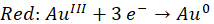 Reduktorem jest atom, który zwiększa swój stopień utlenienia (Fe: 0 → +3), a utleniaczem ten, który zmniejsza swój stopień utlenienia (Au: +3 → 0).