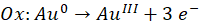 Reduktorem jest atom, który zwiększa swój stopień utlenienia (Au: 0 → +3), a utleniaczem ten, który zmniejsza swój stopień utlenienia (N: +5 → +4).