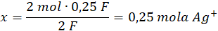 Z równania reakcji wiadomo, że na redukcję 2 moli jonów Ag+ potrzeba ładunku 2 F: