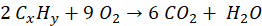 Widać, że aby zgadzała się ilość wodoru, y musi być równe 6.