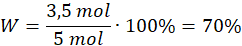 Według wykresu z 5 moli acetylenu otrzymujemy 3,5 mola chlorku winylu. Przy wydajności 100% powinno powstać 5 moli.